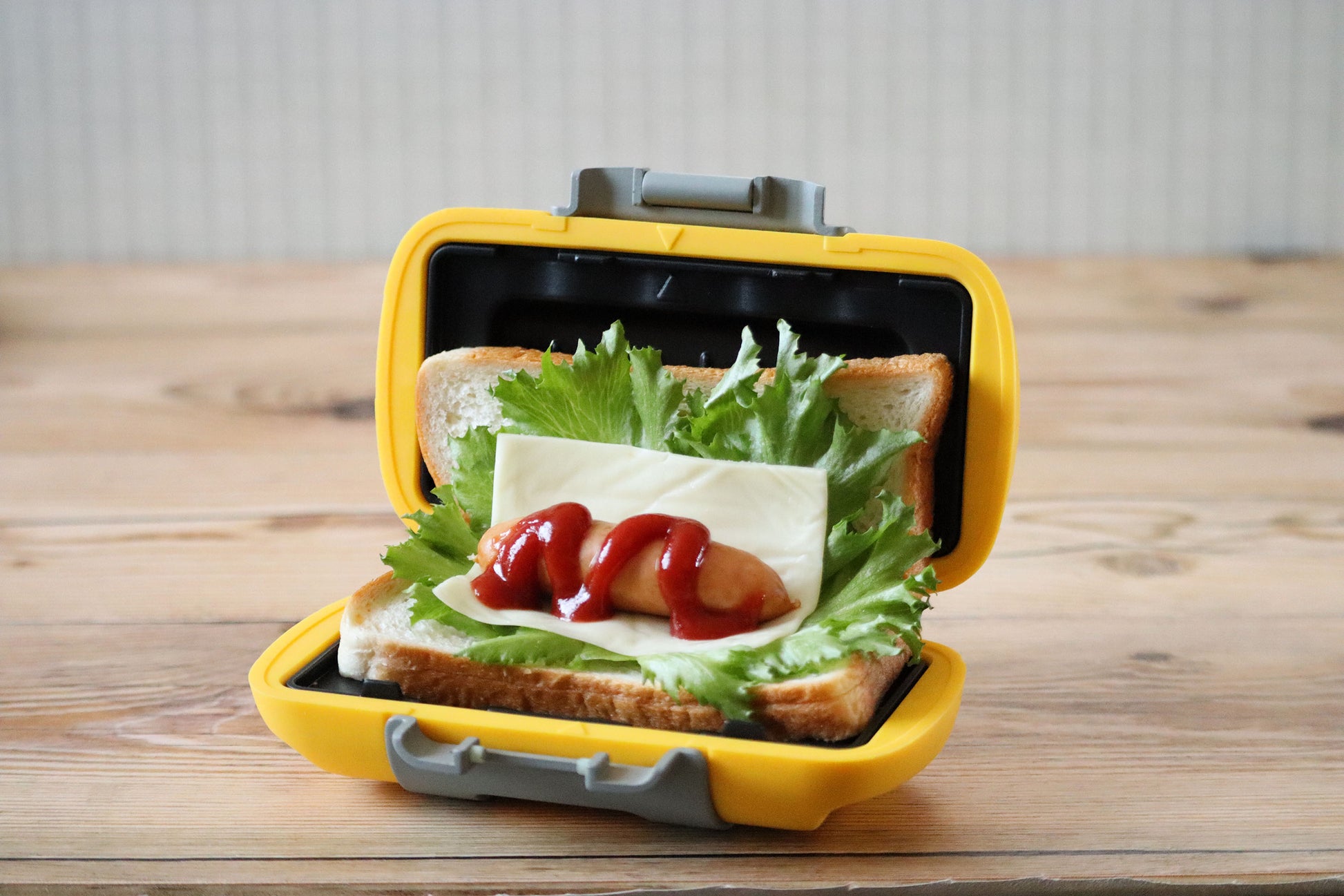 レンジでホットサンドが燃える特殊な素材をプレート底面に使用。